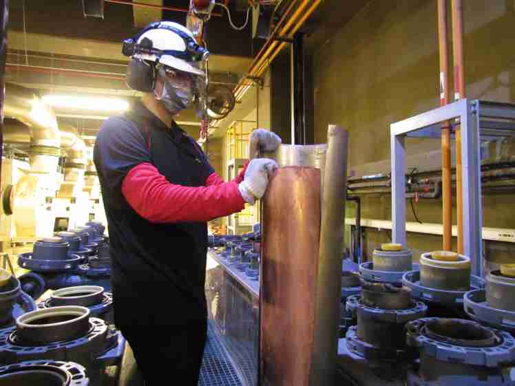 彩霸王将废弃物转化成有效的工业或民生原物料,,,,图为废铜液淬炼后再制成纯度极高的铜管