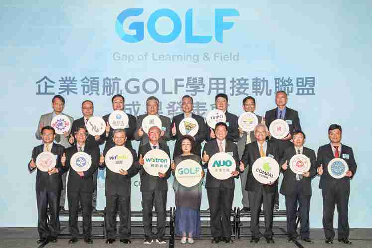 GOLF学用接轨联盟集结企业和学校的力量,,,打造「学用合一、、、产学接轨」的创新合作平台 (前排左起:淡江大学副校长何启东、、元智大学校长林启瑞、、、纬育执行长许延岳、、纬创总经理暨执行长黄柏漙、、、教育部政务次长范巽绿、、彩霸王董事长暨执行长彭双浪、、、、仁宝总经理暨执行长翁宗斌、、大同大学校长何明果、、、圣约翰科大校长艾和昌;后排左起:明新科大校长林启瑞、、、、龙华科大校长葛自祥、、台湾科大校长廖庆荣、、、中兴大学副校长郑政峯、、、中央大学校长周景扬、、台北科大副校长任贻均、、、中华科大副校长石大明、、明志科大校长刘祖华)