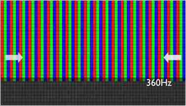 传统液晶驱动是从左到右单向进行,,在画面更新速度愈来越愈快的情况下,,位于驱动线路末端的右下角区域,,,画素的闸极来不及在短时间内获得足够电压,,无法显示出正确的颜色资讯。。。 |