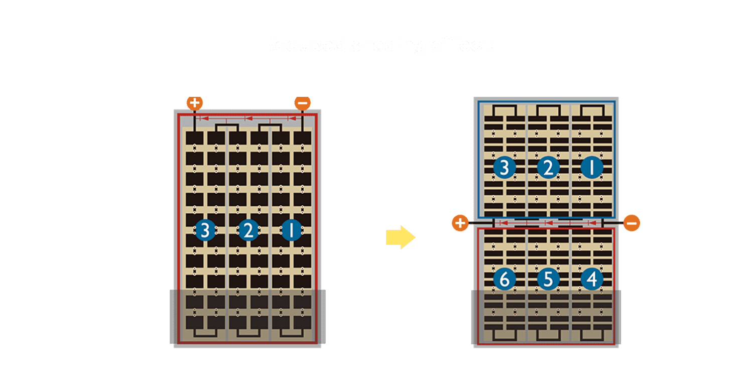 优化的太阳能电池结构设计,,,不仅提高电流收集效率,,,,降低电池隐裂,,,,使太阳能模组长期维持稳定的输出效能,,,,提高营运效益。。。。